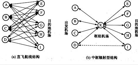 (1)旅客/货主的利益变动情况如果从成本考虑,货运代理公司从Z-Y一X的成本应该高于从Z一X的成本,所以应采用高票价。但事实上这是非常困难的。假设中转航线比直达航线票价低5%。Z-X的直达航线的运价为6.67元/吨公里(计算见点对点航线的有关计算)、飞行时间为2.5h,而2-Y-X的全部飞行时间和中转时间之和为4h(Z-Y需要1h,Y中转需要1h,Y一X需要2h)。如果中转航线比直达航线票价只低5%(6.33元/吨公里),则只有低时间价值的旅客考虑转移到中转航线上。经过计算不难得到,在这种情况下,只有时间价值小于等于30元/人小时的旅客为了节约金钱而选择中转航线。在这种情况下,最终的旅客/货主运输总成本不变,仍为点对点航线网络下的15461.52万元,其中旅客的时间成本上升,付出的运价成本下降。